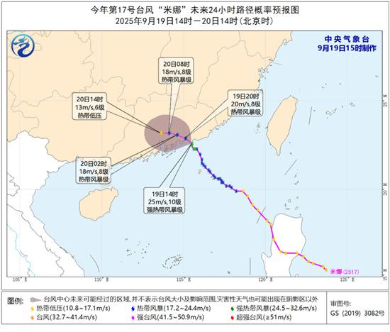 【台风“米娜”在广东汕尾登陆】今年第17号台风“米娜”已于19日14时50分前后在汕尾城区沿海登陆,登陆时中心附近最大风力10级。气象分析师介绍,台风“米娜”登陆后将向偏西方向移动,今天白天至夜间依然是台风“米娜”的主要降雨时段。