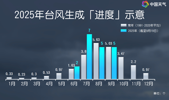 今年以来,西北太平洋和南海上已经生成了19个台风,较常年同期略偏多。从历史统计数据看,9月也是台风的高产月,常年平均可以生成5.03个台风。